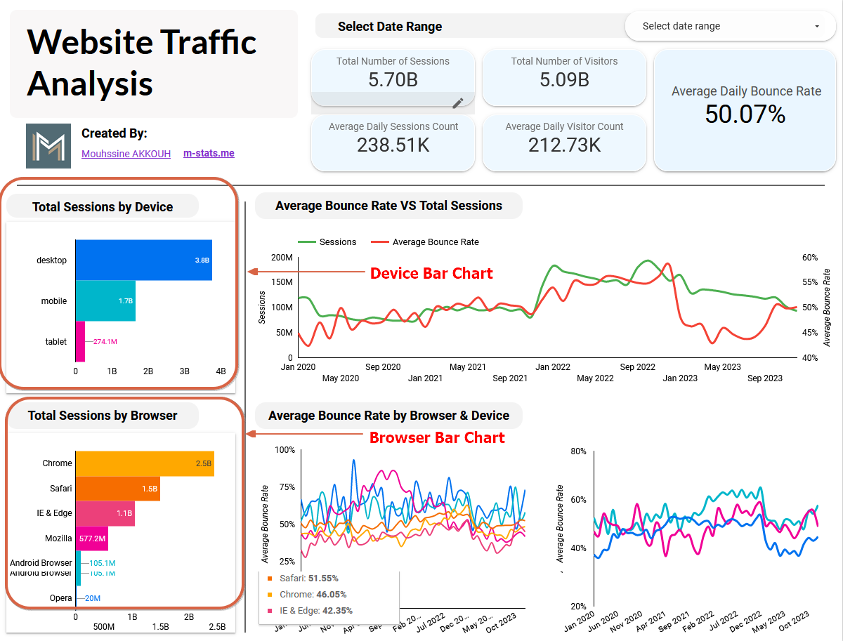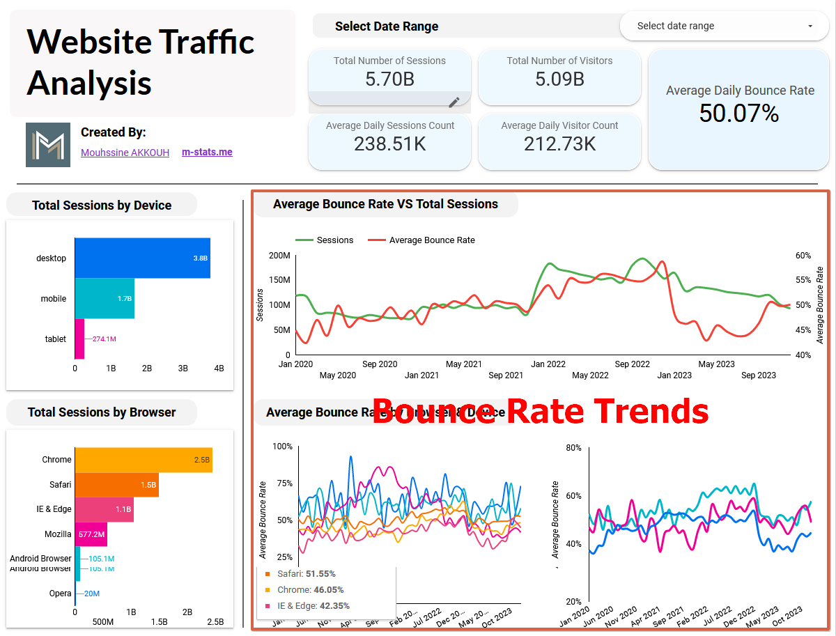 - Average Bounce Rate: Key indicator of visitor engagement.